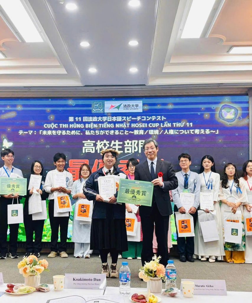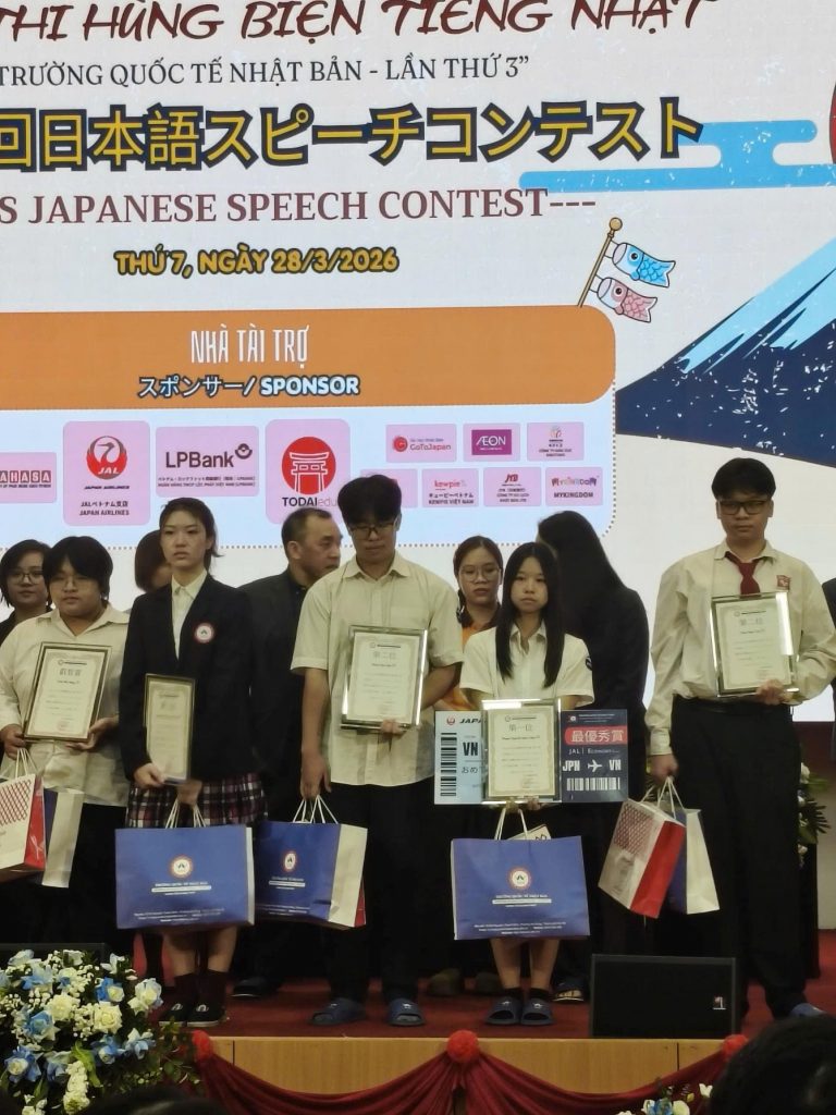 Học sinh Nguyễn Phạm Bảo Châu lớp 11D1 giành giải Nhất và học sinh Phạm Duy Đạt lớp 11D1 đạt giải Nhì tại cuộc thi hùng biện Tiếng Nhật do trường Quốc tế Nhật Bản tổ chức;