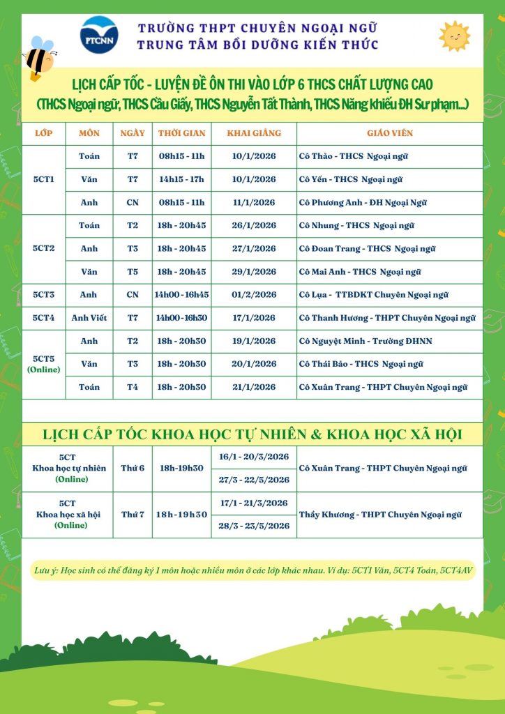 Link đăng ký lớp 5 cấp tốc: https://forms.gle/N3p6QGFTrgzKSTqk7